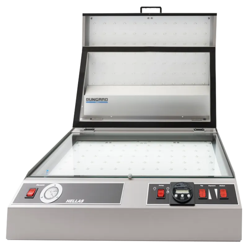 Hellas vacuum exposure units, a leader in the world market since year 1978 are now renovated for a bright future. bungard improved that technology to long lasting and constant light emission by UV LED technology.